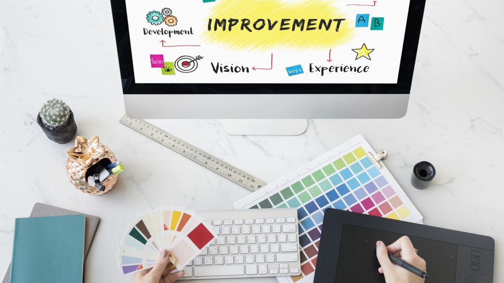 - Desenvolvimento de identidade visual, padronização de cores, formatos e linguagens.